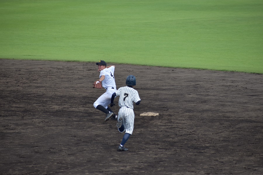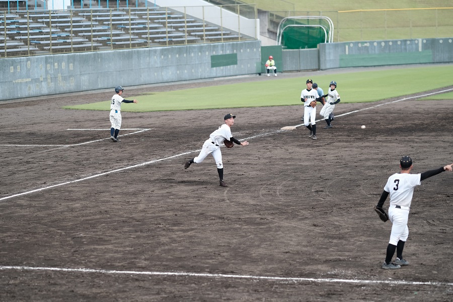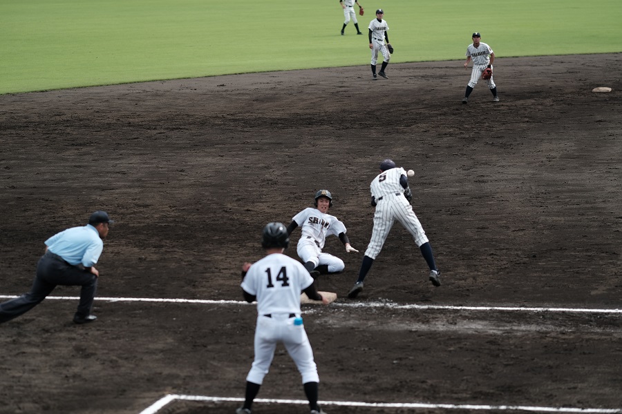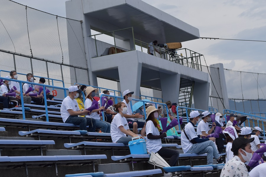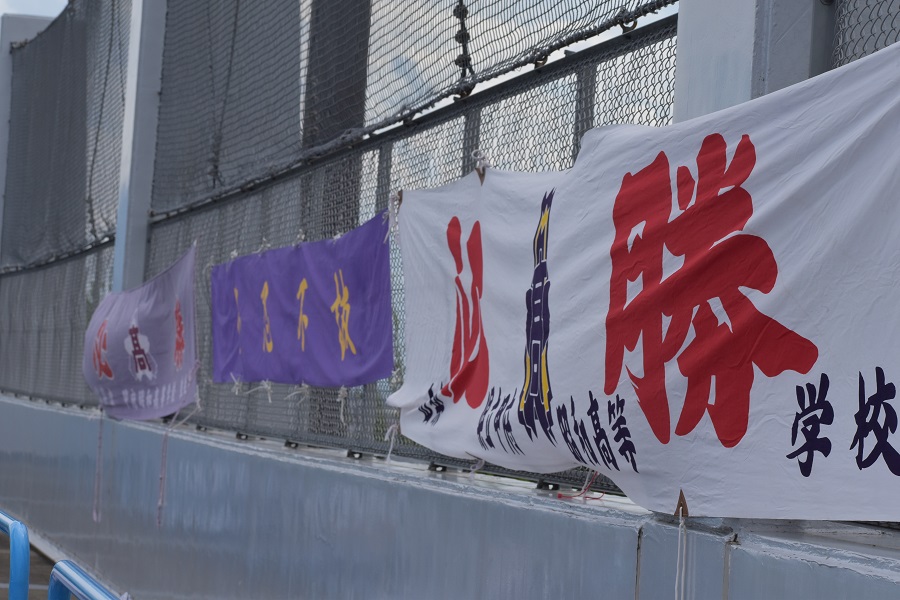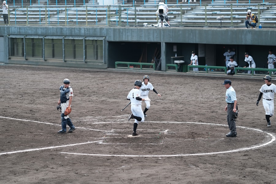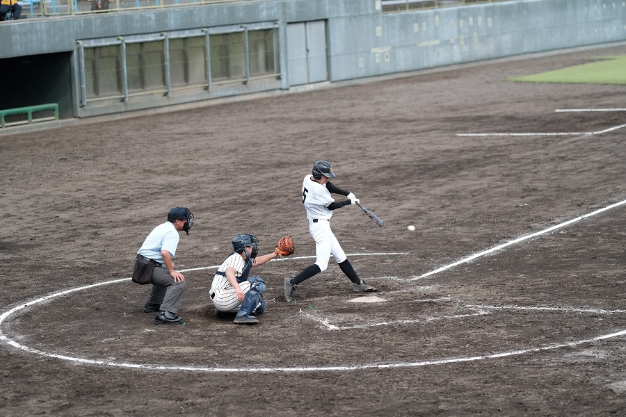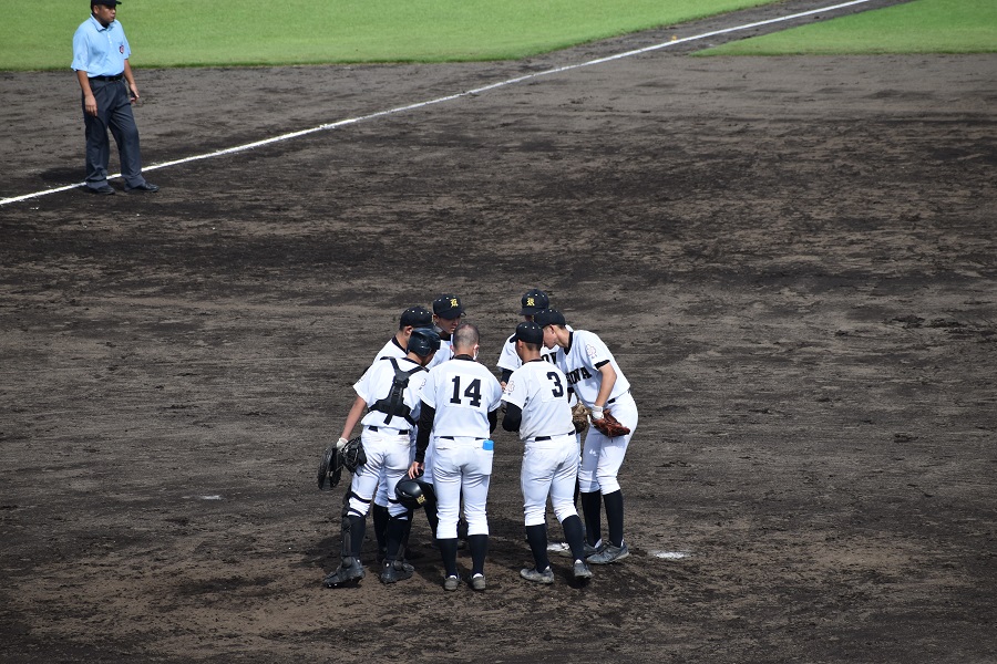 コロナ禍の中、全校応援はかないませんでしたが、校長先生や保護者の方々が応援する中、野球部員は一丸となって試合に臨みました。
