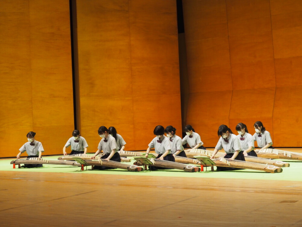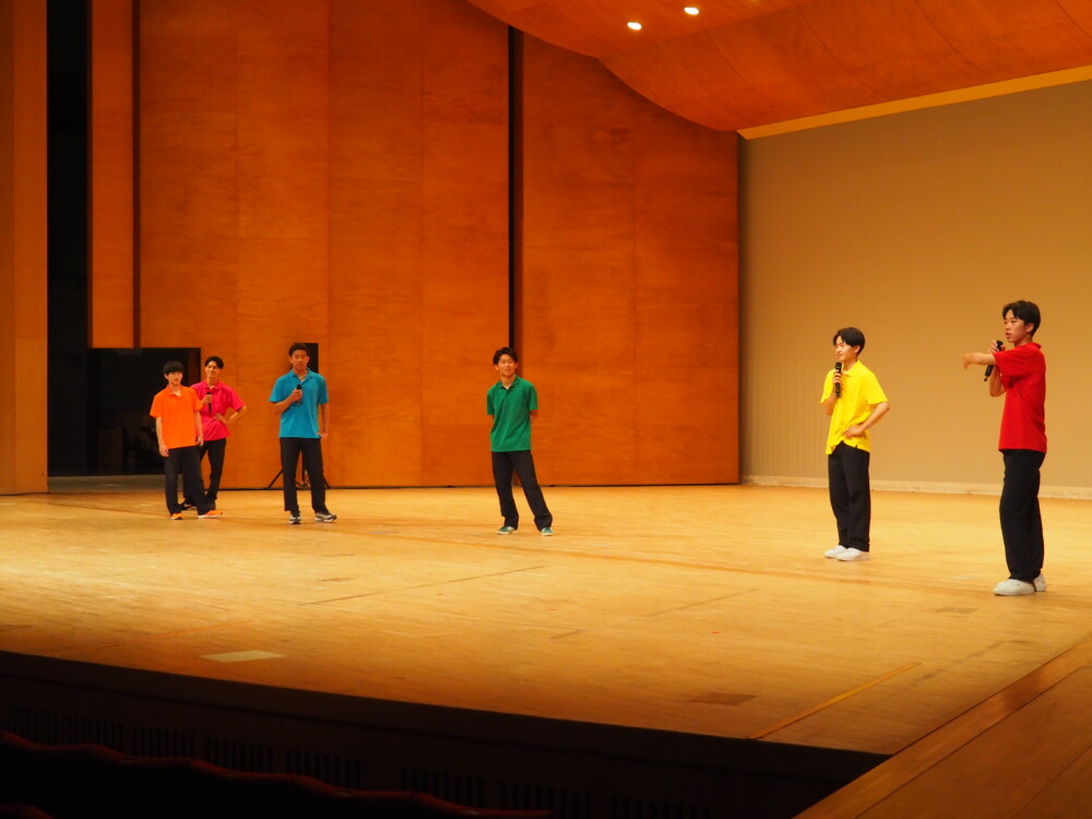 紫映祭1日目がYCC県民文化ホールで行われました。今年も感染対策のため、座席は距離をあけ、声を出さず拍手とペンライトで会場を盛り上げました。今年は発表の様子をLIVE配信し、保護者の皆様にもご覧いただきました。