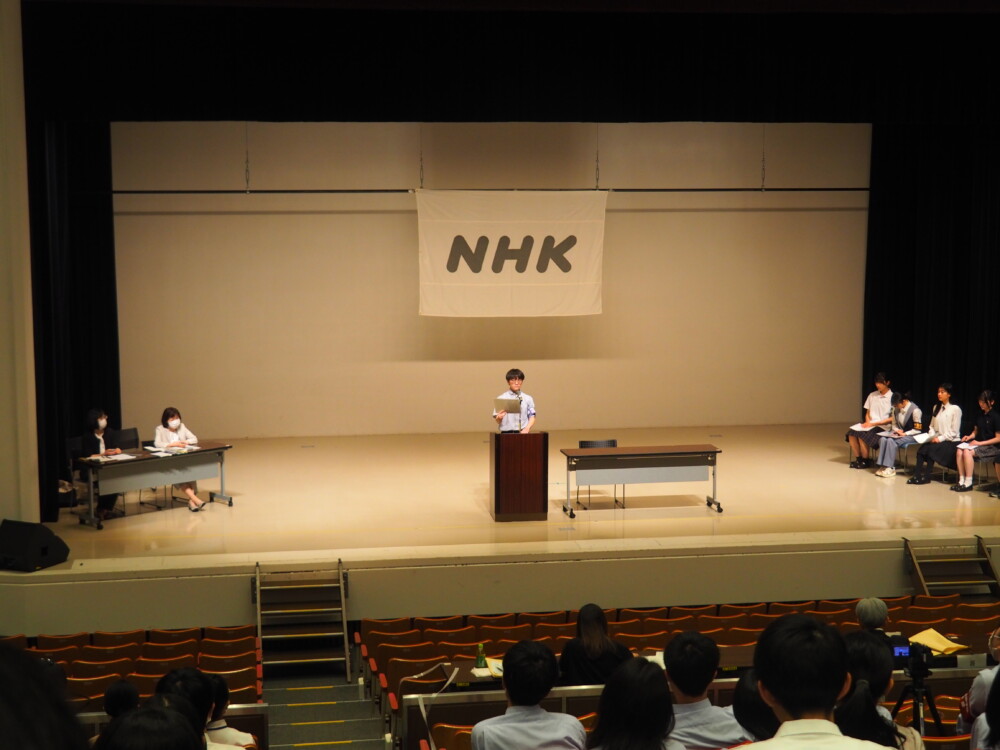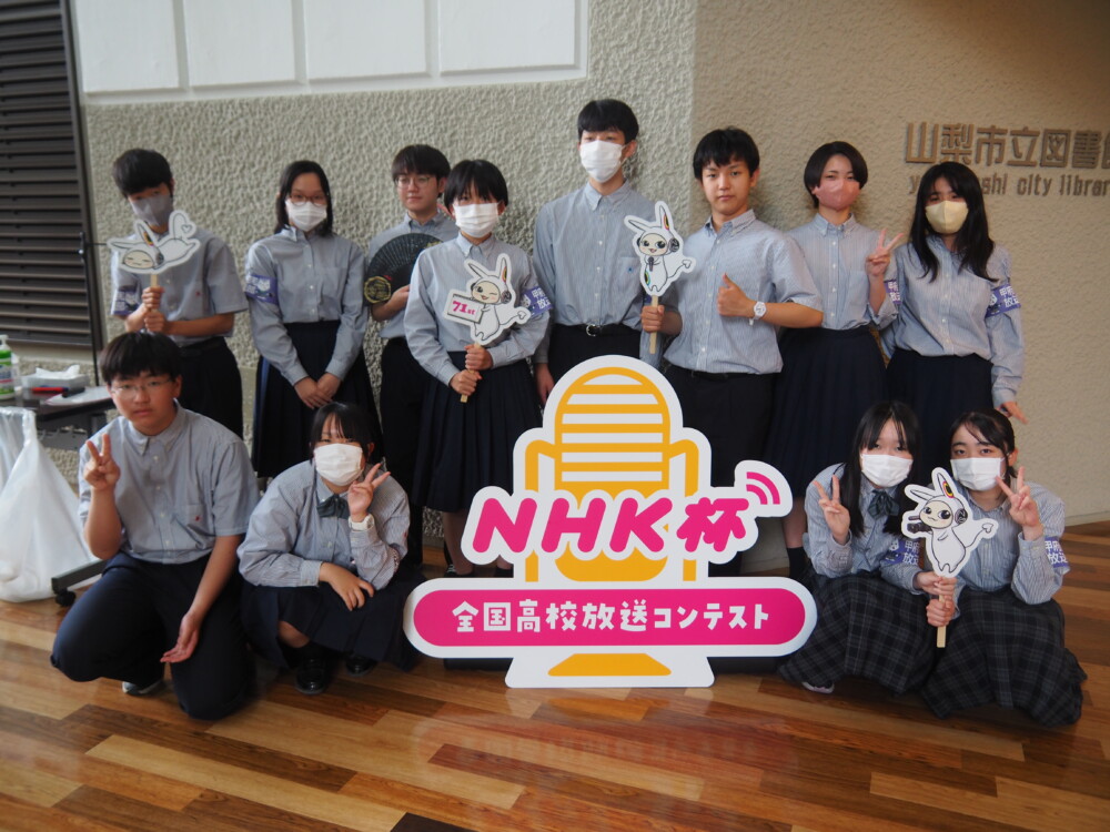 NHK杯全国高校放送コンテスト山梨県大会が行われ、創作ラジオドラマ部門が第1位・ラジオドキュメント部門が第1位・テレビドキュメント部門が第4位に入賞しました。また3年今 稜太さんの「レキシントンの幽霊」の朗読が6位入賞し、全国大会へ4部門、出場できることになりました。入賞は逃した出場者もそれぞれが練習の成果を発揮して素晴らしい読みを披露できました。全国大会は7月23日から3日間東京で行われます。