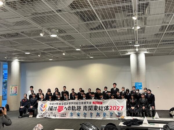 山梨県立甲府昭和高等学校 > 学校の様子 > 2027年南関東インターハイへ向けて 2025年12月12日カテゴリー: 学校の様子 2027年南関東インターハイへ向けて 12月11日(木) 2027年南関東インターハイの高校生活動推進委員会第1回分科会が行われました。山梨開催の8競技のPRを生徒主体で行っていきます。 1年4組の上野綾花さんが本校の代表として参加します!