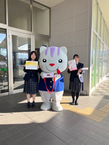 生徒会9名とトライスが、昭和町社会福祉協議会協賛で赤い羽根共同募金街頭ボランティアに参加して参りました。冬休みまであと少しですが、生徒会活動も頑張っています。