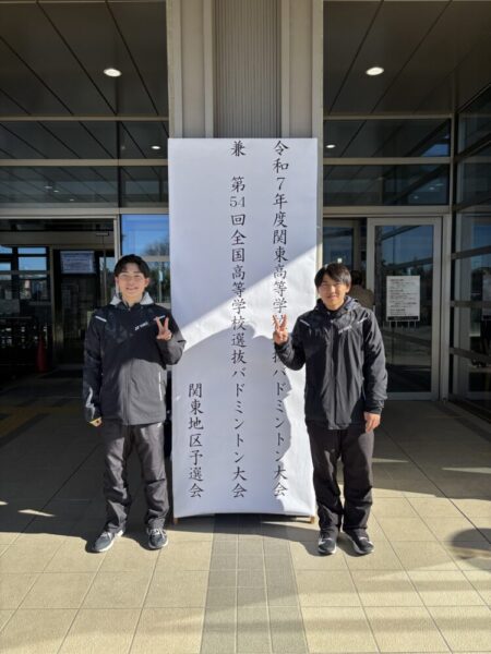 12月18日から東京都葛飾区で行われた関東高校選抜バドミントン大会に、男子個人ダブルスの部に1組、男子個人シングルスの部に1名が出場しました。惜しくも初戦敗退となりましたが、強豪校の選手相手にも臆することなくプレーすることができました。今回の経験を糧に今後も練習に励みたいと思います。今後とも応援よろしくお願いいたします。