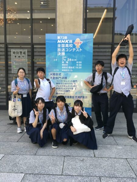 山梨県立甲府昭和高等学校 > 学校の様子 > 部活動 > 放送 > 【放送部】NHK杯全国高校放送コンテストへ 2025年7月25日カテゴリー: 学校の様子 部活動 放送 【放送部】NHK杯全国高校放送コンテストへ 7月25日(金) 7月21日~24日 東京の国立オリンピック記念青少年センターとNHKホールで3日間にわたって行われたNHK杯全国高校放送コンテストに出場してきました。3部門(アナウンス部門1名・番組2作品)発表を披露することができ、全国の高校生と交流することができました。全国の発表や作品に触れ、また高校生と交流し、多くの気づきや刺激を得る機会となりました。