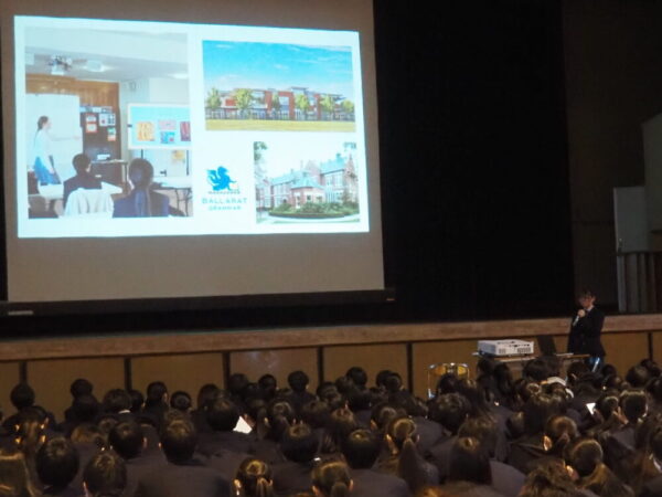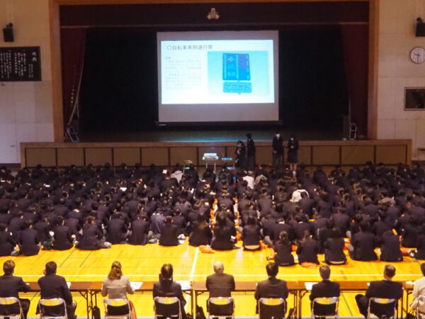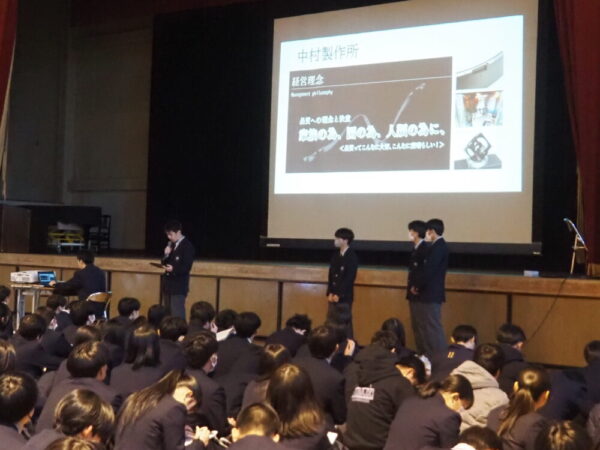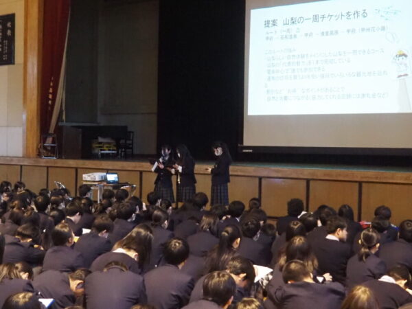 1・2年生が1年間の探究の成果を発表しました。発表は体育館で行われました。