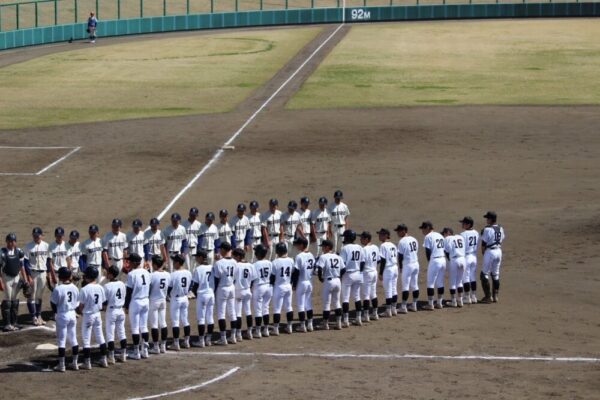 山梨県立甲府昭和高等学校 > 学校の様子 > 部活動 > 野球 > 敗戦から見えた収穫と課題 R8春季高校野球 2026年4月17日カテゴリー: 野球 学校の様子 部活動 敗戦から見えた収穫と課題 R8春季高校野球 4月12日(日) 富士北麓公園野球場において春季県大会1回戦が行われ、青洲高校と対戦した。本校・甲府昭和は初回から主導権を握られる苦しい展開となり、1―7で敗戦した。 初回、立ち上がりの制球に苦しみ、3点を先制される。何とか流れを引き戻したい本校であったが、相手投手の丁寧な投球の前に序盤は好機を作れず、重苦しい雰囲気が続いた。4回には再び相手打線につかまり2点を追加され、序盤で点差を広げられたことが最後まで響いた。 5回表、本校は四球と安打などで走者を出し、粘り強い攻撃で反撃の兆しを見せたものの、あと一本が出ず得点を重ねることはできなかった。その裏にも追加点を許し、以降も相手の隙のない攻守に苦しめられた。 この敗戦で大会からは姿を消す結果となったが、試合の中では随所に収穫も見られた。夏の大会に向け、一回り成長した姿を見せられるよう取り組んでいきたい。