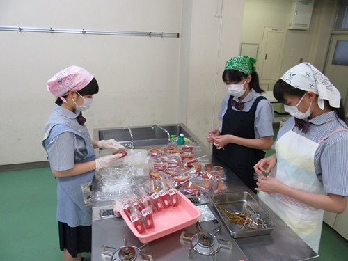 毎週木曜日に楽しく活動しています。今までの活動は、お菓子作りが中心でしたが、最近では様々な分野の料理に挑戦しています。学年関係なく、みんなで楽しく活動できるところが家庭料理部の魅力です!