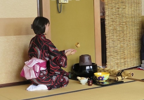 私たち茶道部は顧問の榎本先生、外部講師の先生とともに毎週お稽古に励んでいます。部活の時にいつもかけている掛け軸「和敬清寂」を部の目標としてこの目標に少しでも近づけるように日々活動しています。この意味は、主人と客とは心なごやかにお互いを敬い、茶室・茶道具は清楚・質素を心がけることです。活動内容はお茶をたてて飲むのはもちろん、お点前といってお客様に自分のお茶を飲んでもらうための作法を学びます。また、半東・席主といった役割も学ぶことができ、日本人としての礼儀も同時に学ぶことができます。「あいさつ」「歩き方」「立ち方」といった現代の生活の生活にも使えるような作法も学べます。とても充実した楽しい部となっています。